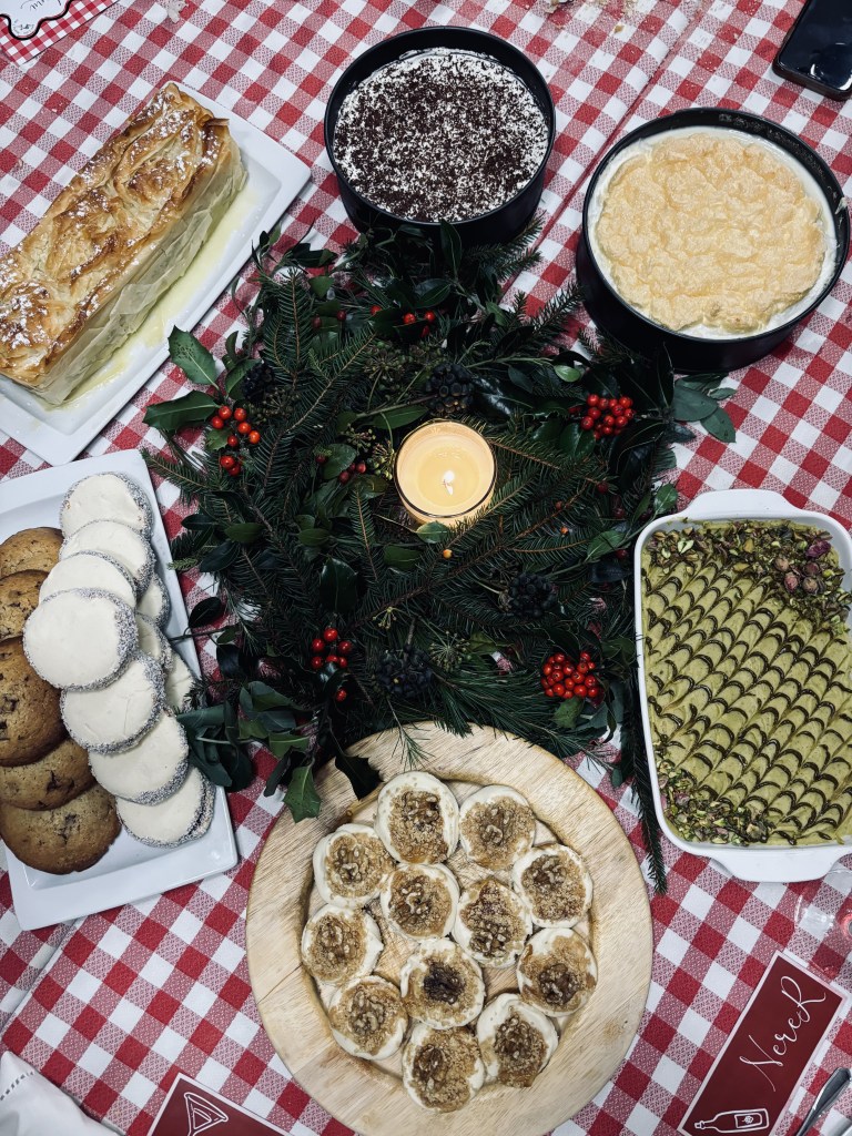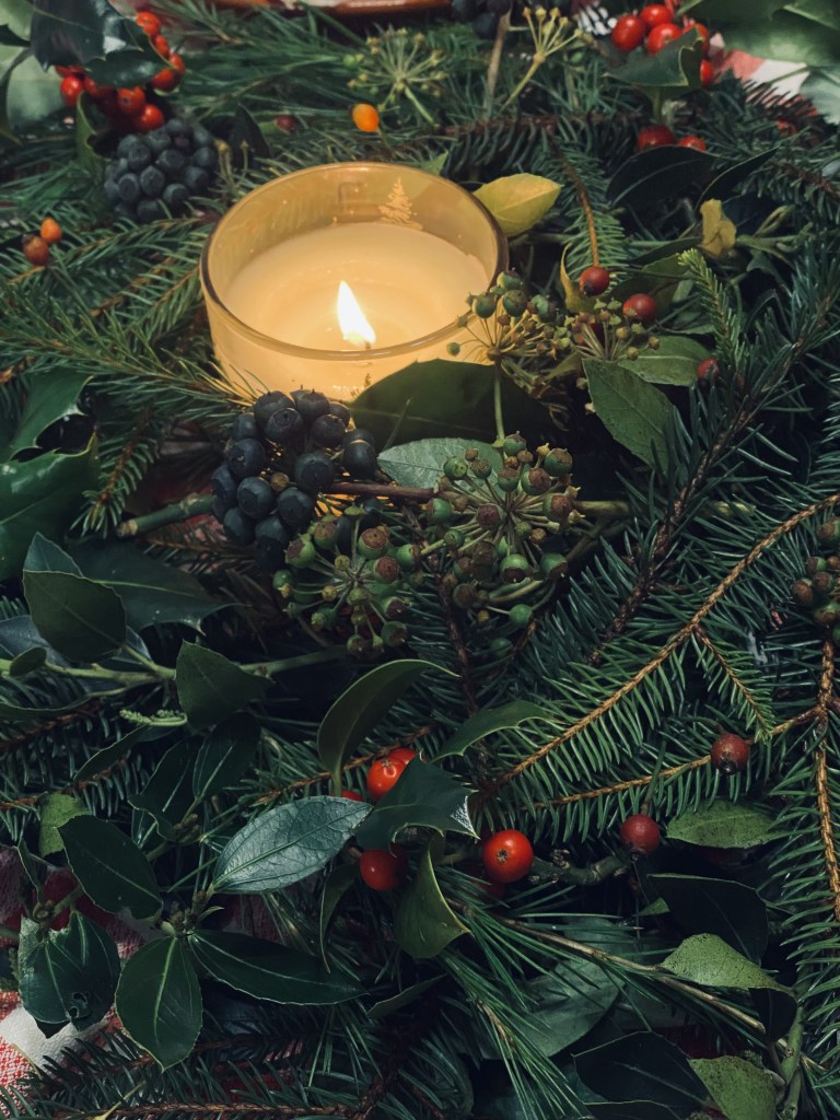 - Centro de mesa navideño: Diseñamos un centro de mesa que combinaba elementos rústicos con detalles propios de la estación, dando un aire íntimo y especial al espacio.